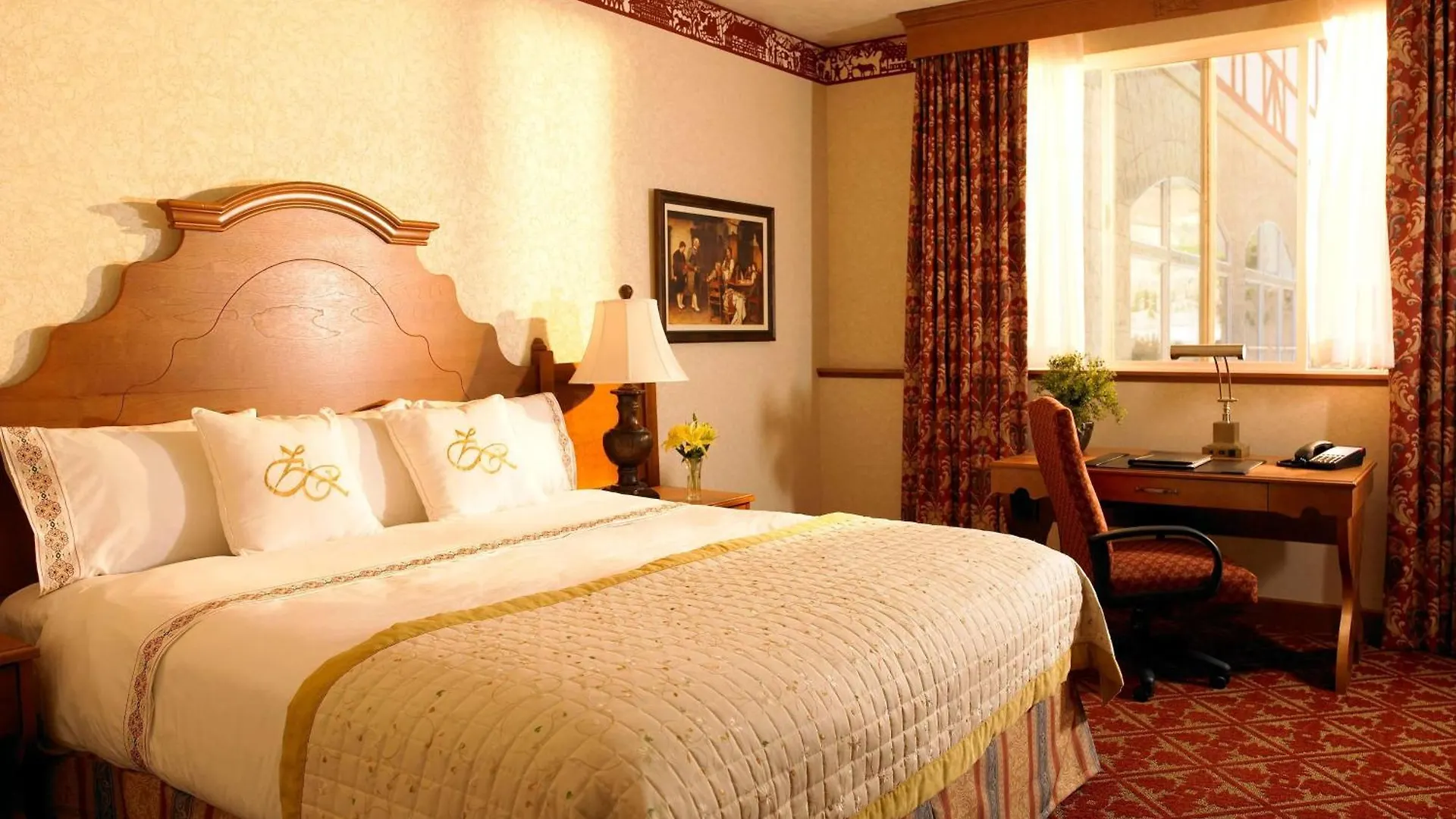 The Zermatt Utah Resort & Spa Trademark Collection By Wyndham in Midway offers a variety of luxurious rooms, including Deluxe King Suites, One-Bedroom Villas, and King Rooms. Each room is adorned with elegant furniture, such as writing desks and comfortable couch beds, creating a truly elegant atmosphere. Amenities like flat-screen TVs with satellite channels provide entertainment, while personal safes ensure safety and peace of mind. The rooms are equipped with coffee and tea making facilities for added convenience. Some rooms even feature a stone fireplace for a cozy ambiance. Comfortable sitting areas and balconies with beautiful views are offered in the air-conditioned premises, creating the perfect retreat. The private and separate bathrooms offer guest toiletries, soft towels, and bathrobes. Some even feature hot tubs and saunas for extra relaxation. Experience utmost comfort and sophistication in all 300 rooms at The Zermatt Utah Resort & Spa Trademark Collection By Wyndham Midway.